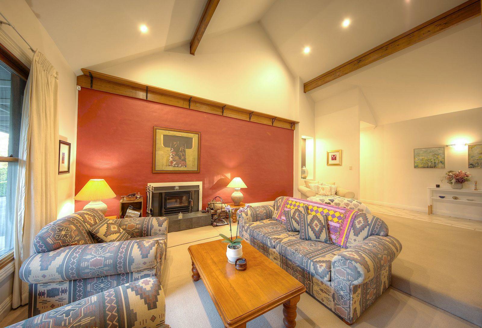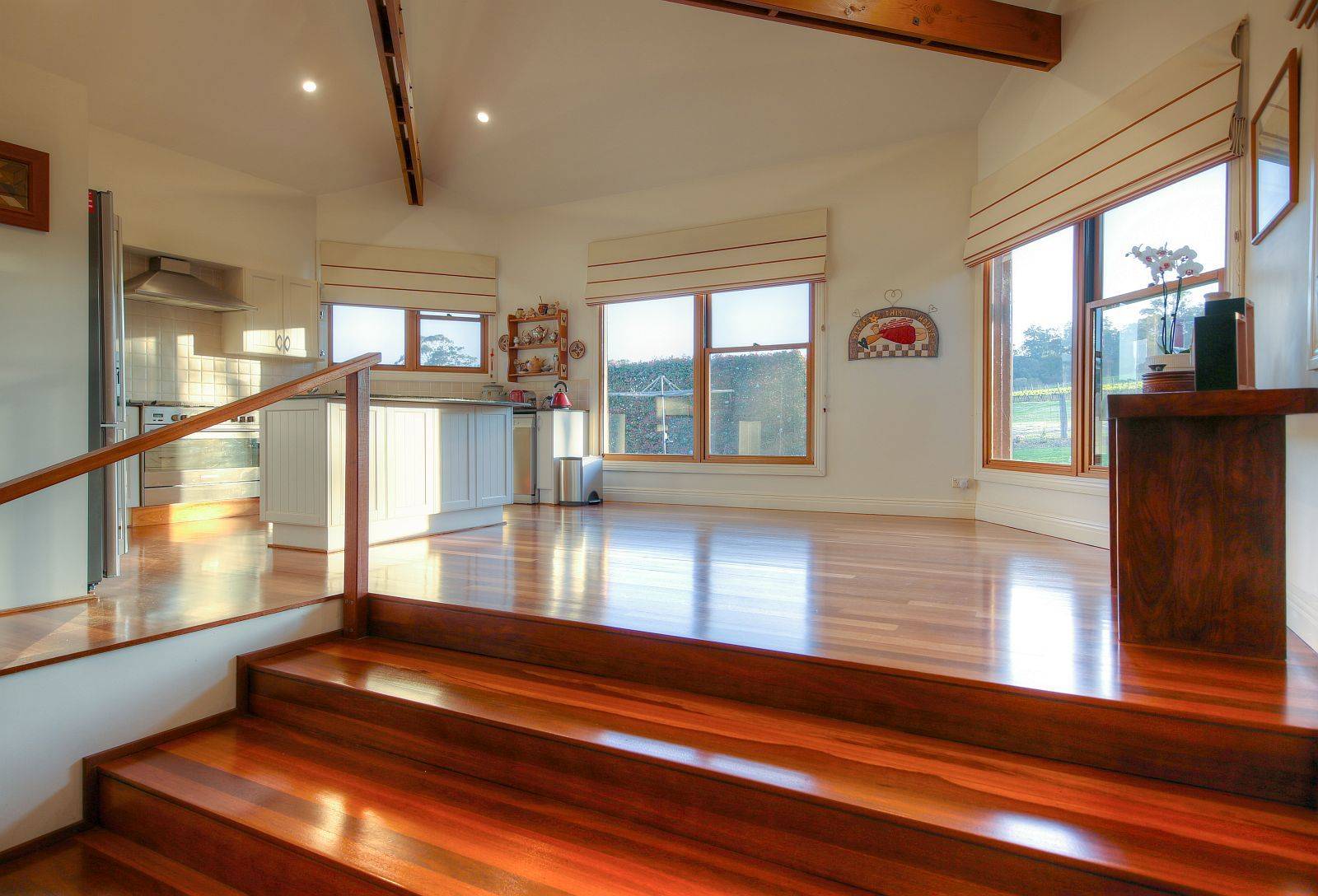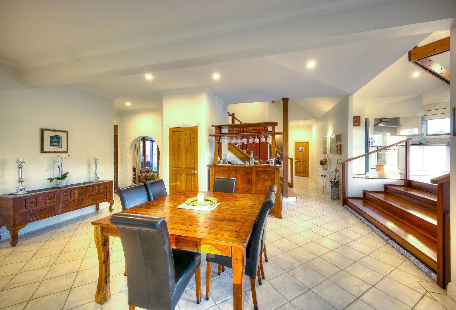 Tri level features with majestic elevated kitchen finished to perfection with island stone bench prep area, feature internal brickwork to main formal living with super high ceilings, tasteful mood lighting, slow combustion fireplace, formal dining with natural light in abundance, views to vineyard framed to tantalise. Further extending to informal living / media area, vaulted ceilings & polished hardwood floors are prominent throughout, upstairs a master suite with Cape Cod construction affords the best of attributes delivering autonomy from other well separated areas, usability & flexibility are key, an abundance of characteristics are on show.