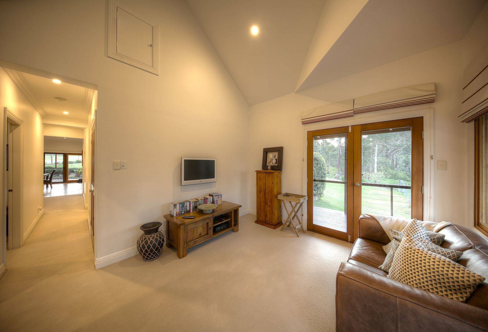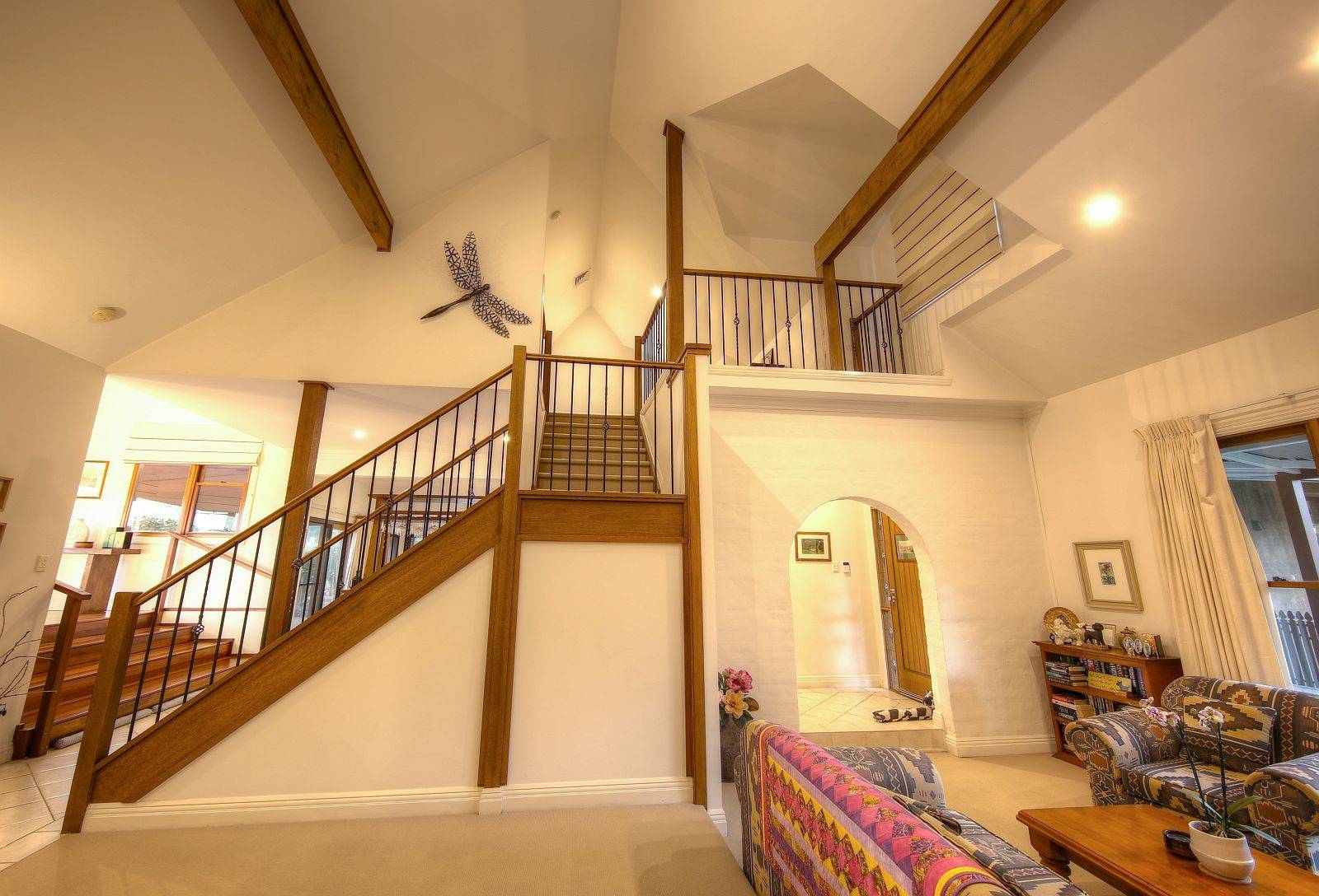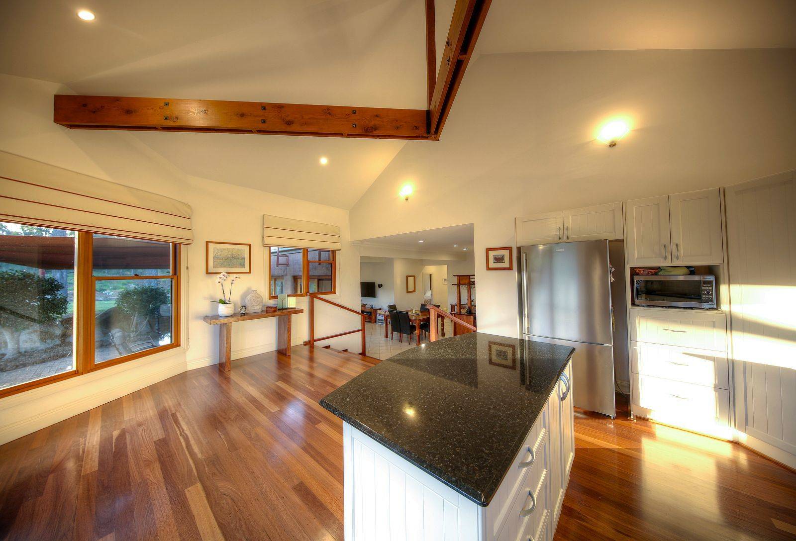 Tri level features with majestic elevated kitchen finished to perfection with island stone bench prep area, feature internal brickwork to main formal living with super high ceilings, tasteful mood lighting, slow combustion fireplace, formal dining with natural light in abundance, views to vineyard framed to tantalise. Further extending to informal living / media area, vaulted ceilings & polished hardwood floors are prominent throughout, upstairs a master suite with Cape Cod construction affords the best of attributes delivering autonomy from other well separated areas, usability & flexibility are key, an abundance of characteristics are on show.