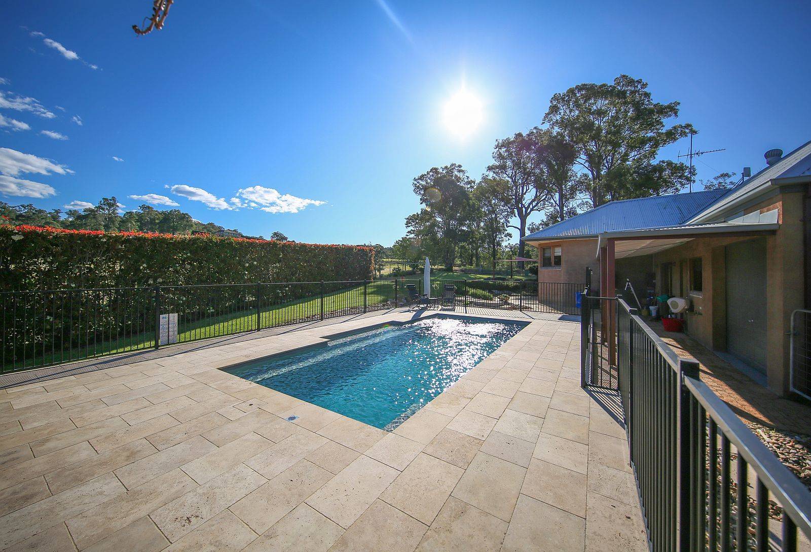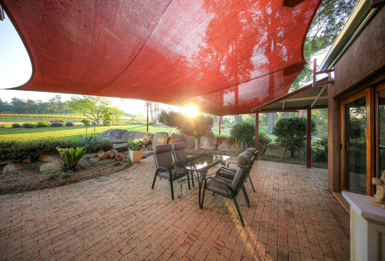 Abutting the working vineyard is wonderful with afternoon shadows magnifying the appeal. Fabulous gardens are to be enjoyed, tasteful landscaping, sweeping crushed stone driveway complimented with bitumen off street parking, native & mature plantings, shade trees, clay paved areas & pathways, quiet getaway outlooks overlooking the gorge to rear boundary, vast entertaining patio, shade cloth protection, sparkling in ground swimming pool for the kids, ample side access, many areas for extra shedding if required. Triple garaging capacity under main roof with segregation for workshop if required.