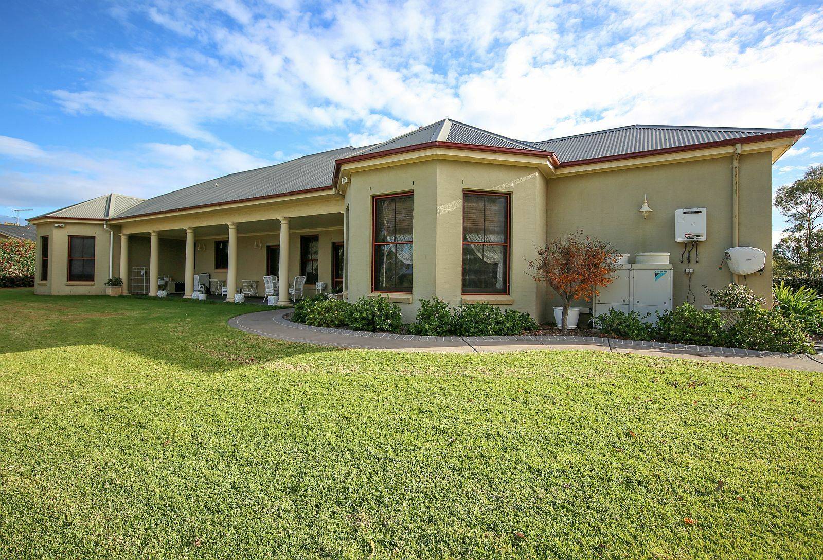 The home tackles the seasons with a sound array of heavy duty DAIKIN ducted reverse cycle air conditioning along with natural gas connectivity, feature gas fireplace to formal lounge. Design is important with a nice touch being the walk through pantry to formal dining from the kitchen, convenient especially for dinner parties & preparation. All further (3) bedrooms appointed appropriately & generous areas offered along with built ins where in situ. Externally the gardens are tastefully retained & landscaped with extra capacity rainwater storage of approximately 100000 litres. The property is served with sewer connection.