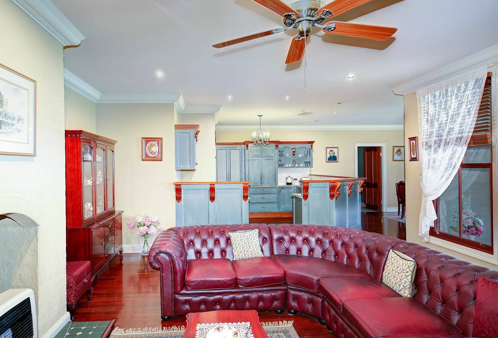 4797m2 land area, High ceilings, Colorbond roofing, (4) beds + study, Decorative cornice & ceiling rose plaster, Triple detached garaging / workshop, Polished timber hardwood flooring, French provincial style kitchen cabinetry & gas range, Timber surround to fireplace mantlepiece, Bagged exterior brickwork & internal feature brickwork, Bay windows overlooking the fabulous rear vista. Clawfoot bath to main, Expansive master bedroom with walk in robe.