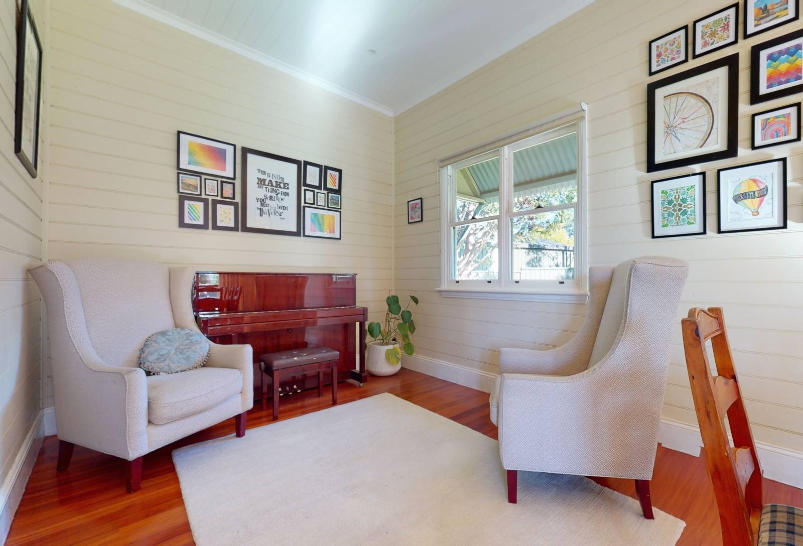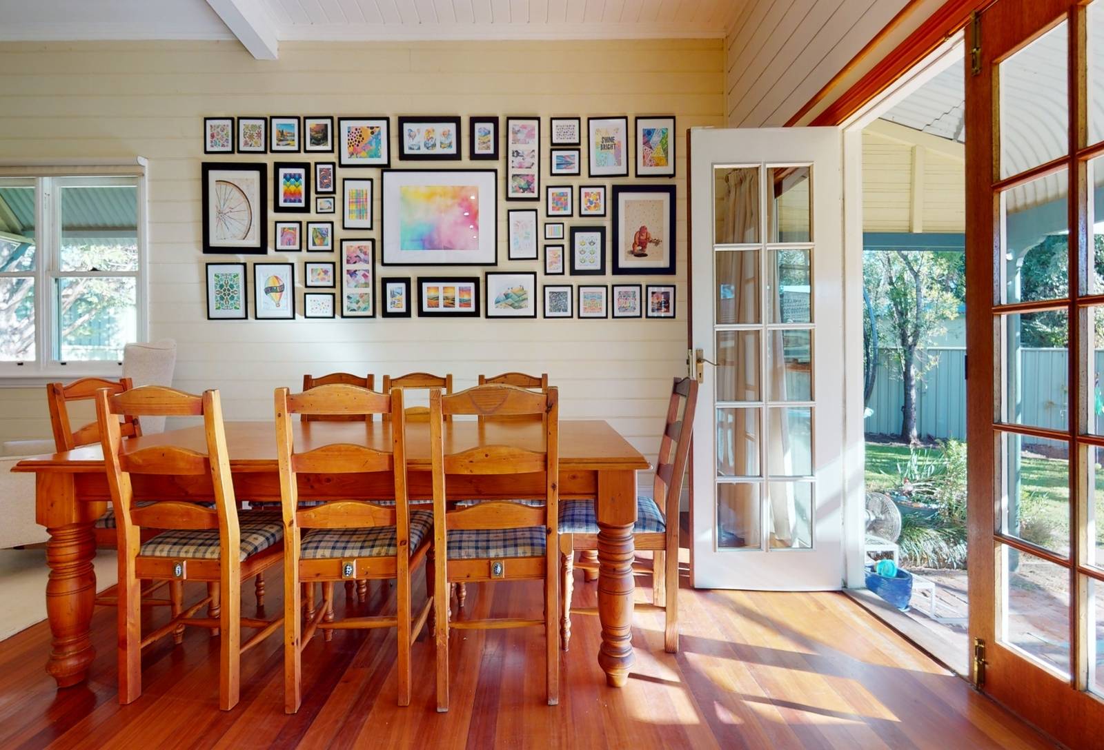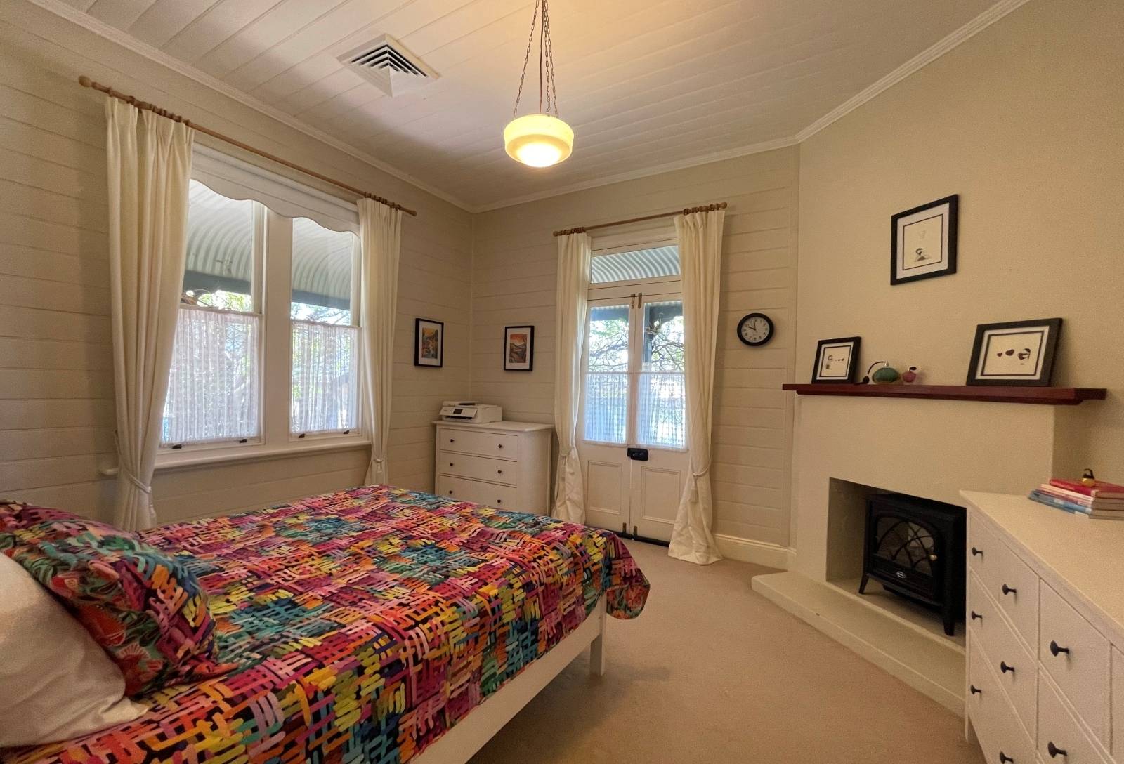 - Polished floorboards, timber windows, French door access,
