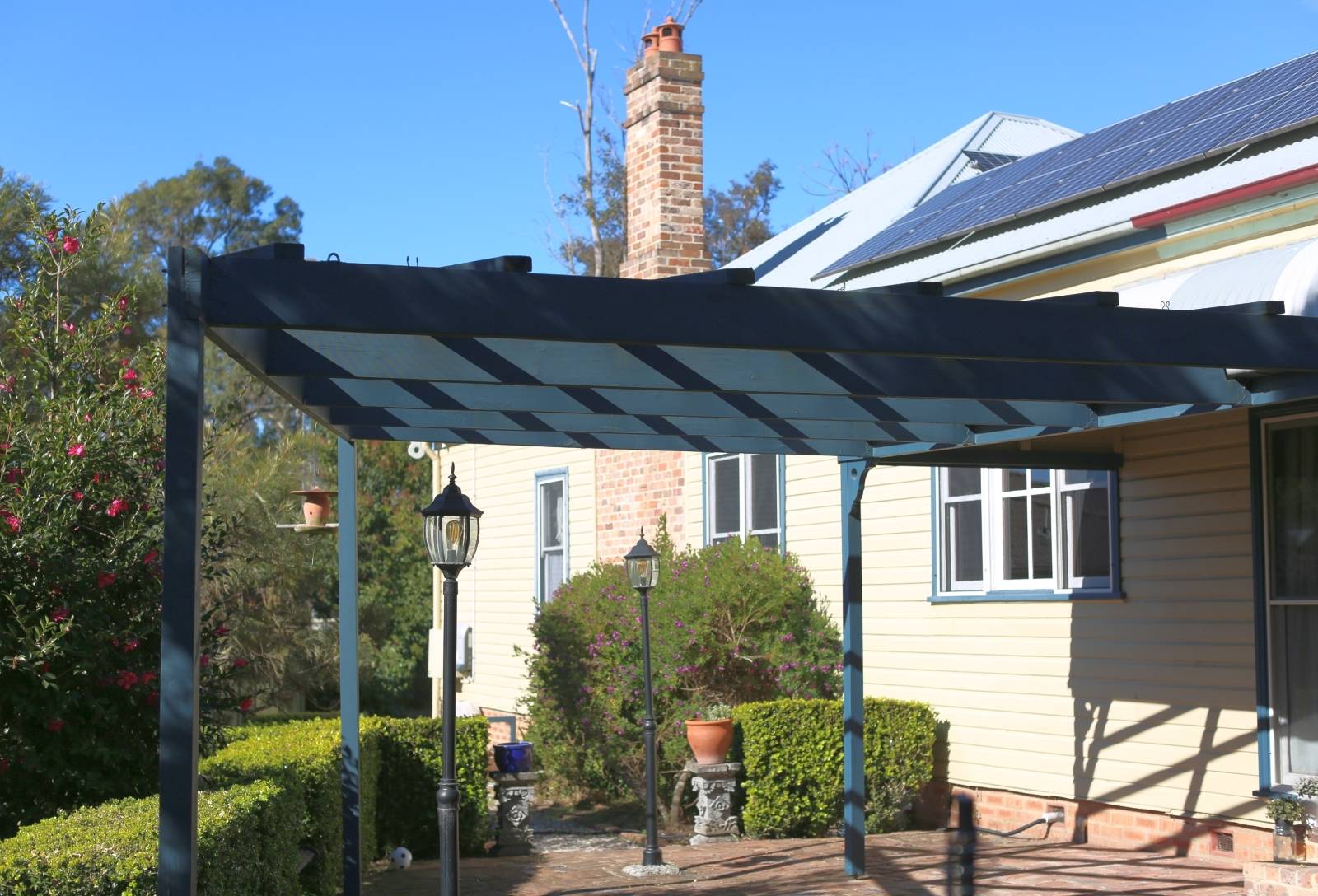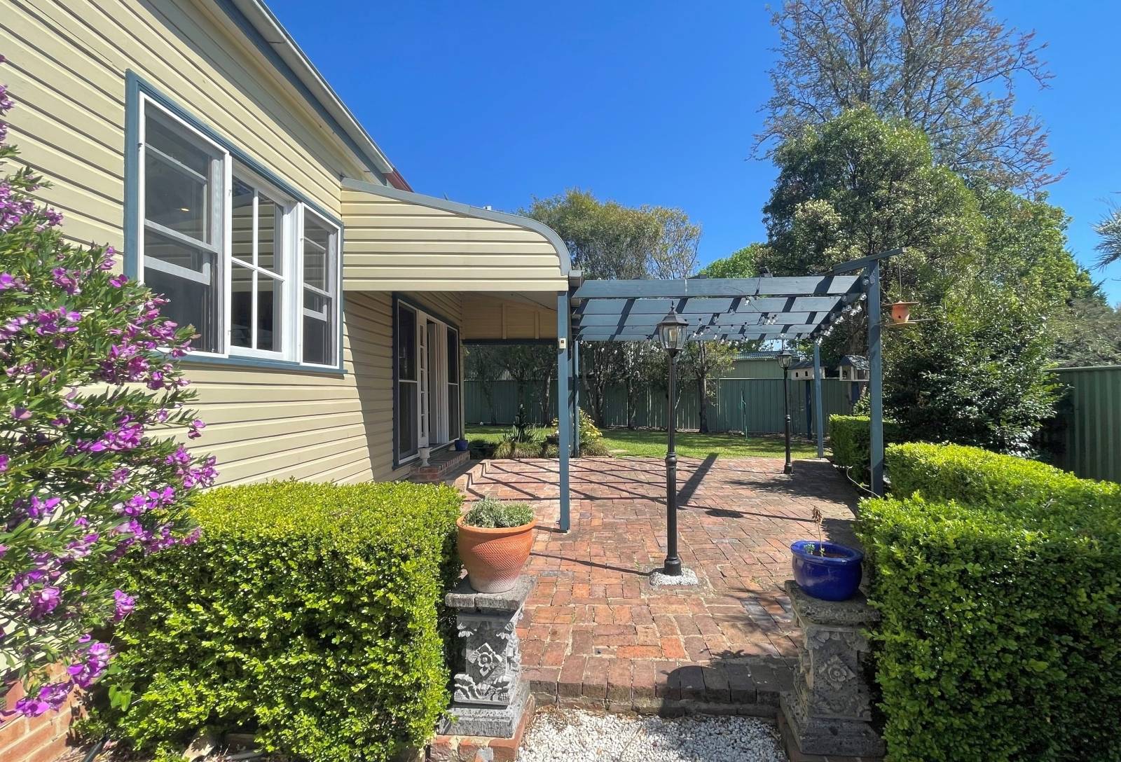 - Pergola, paved pathways, large entertaining area,