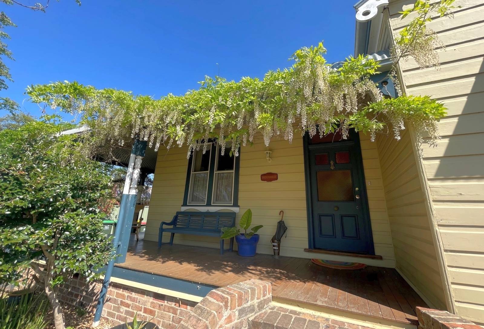 - Antique sand stock bricks, bullnose wraparound timber veranda,