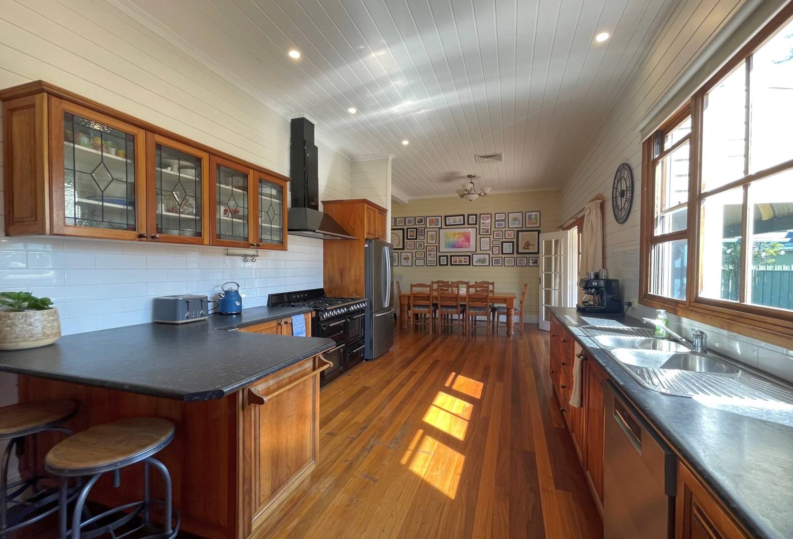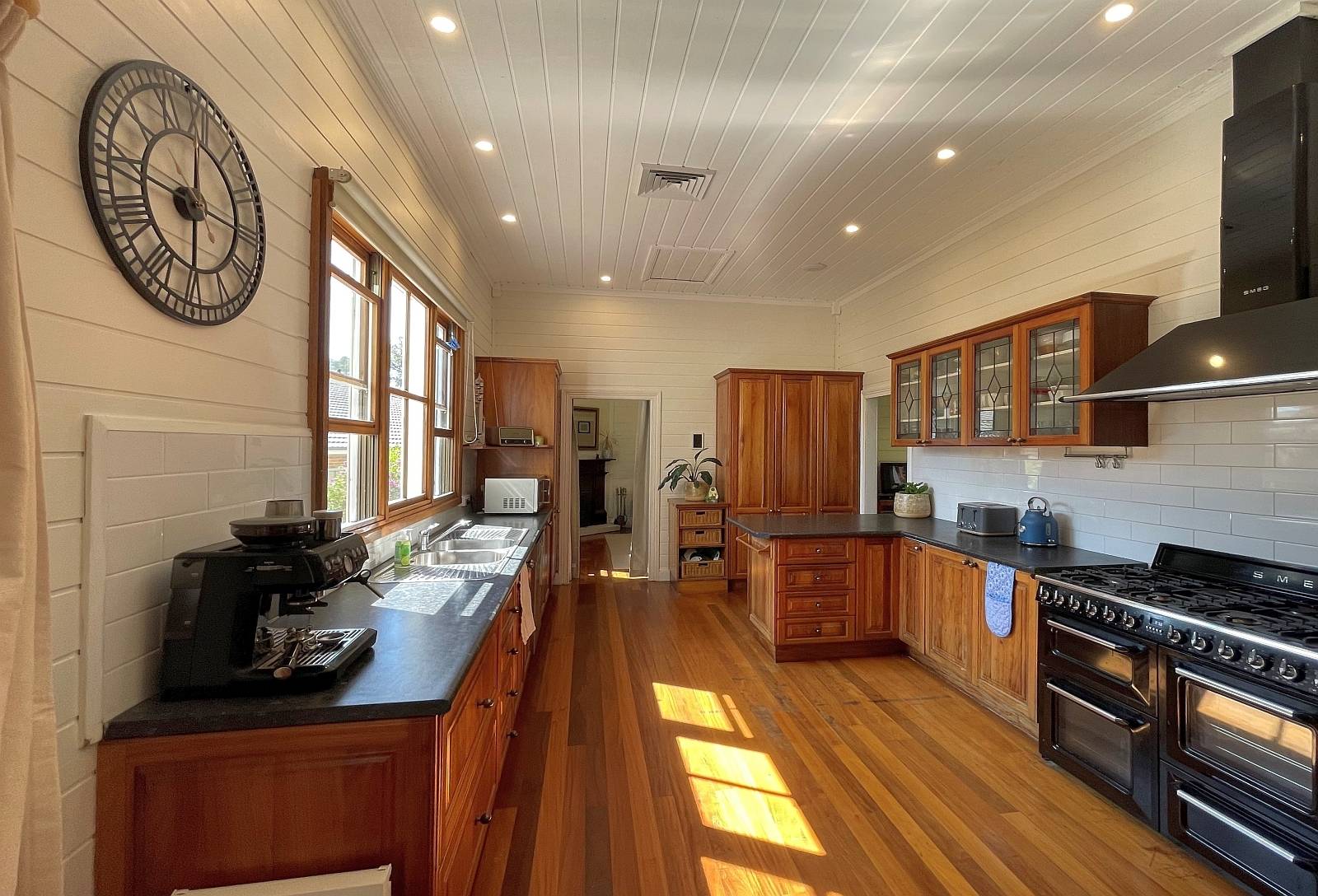 - Tasmanian black wood kitchen, Smeg gas range / double oven,