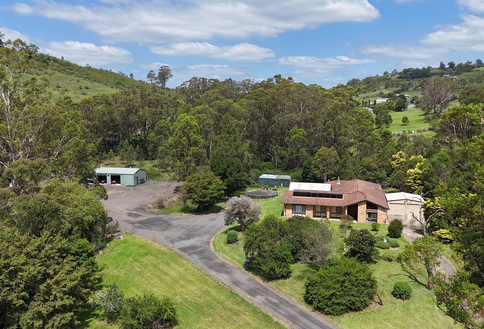 Spacious desirable bespoke home, architect features elevated with sweeping views across the property, comfortable layout consisting of '4' beds + separate office / study.  Two slow combustion fireplaces, large volume in ground tank water serves potable requirements.
