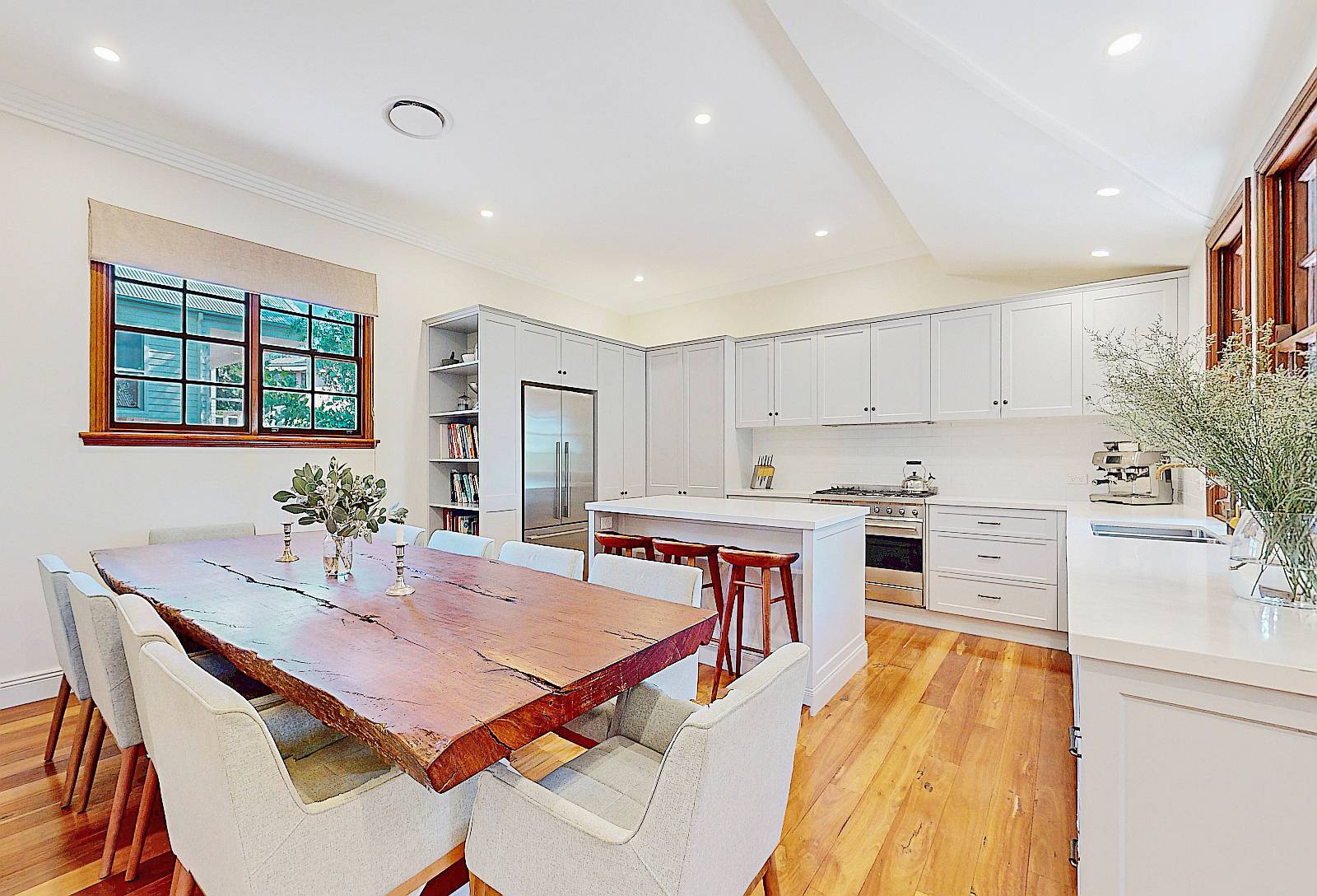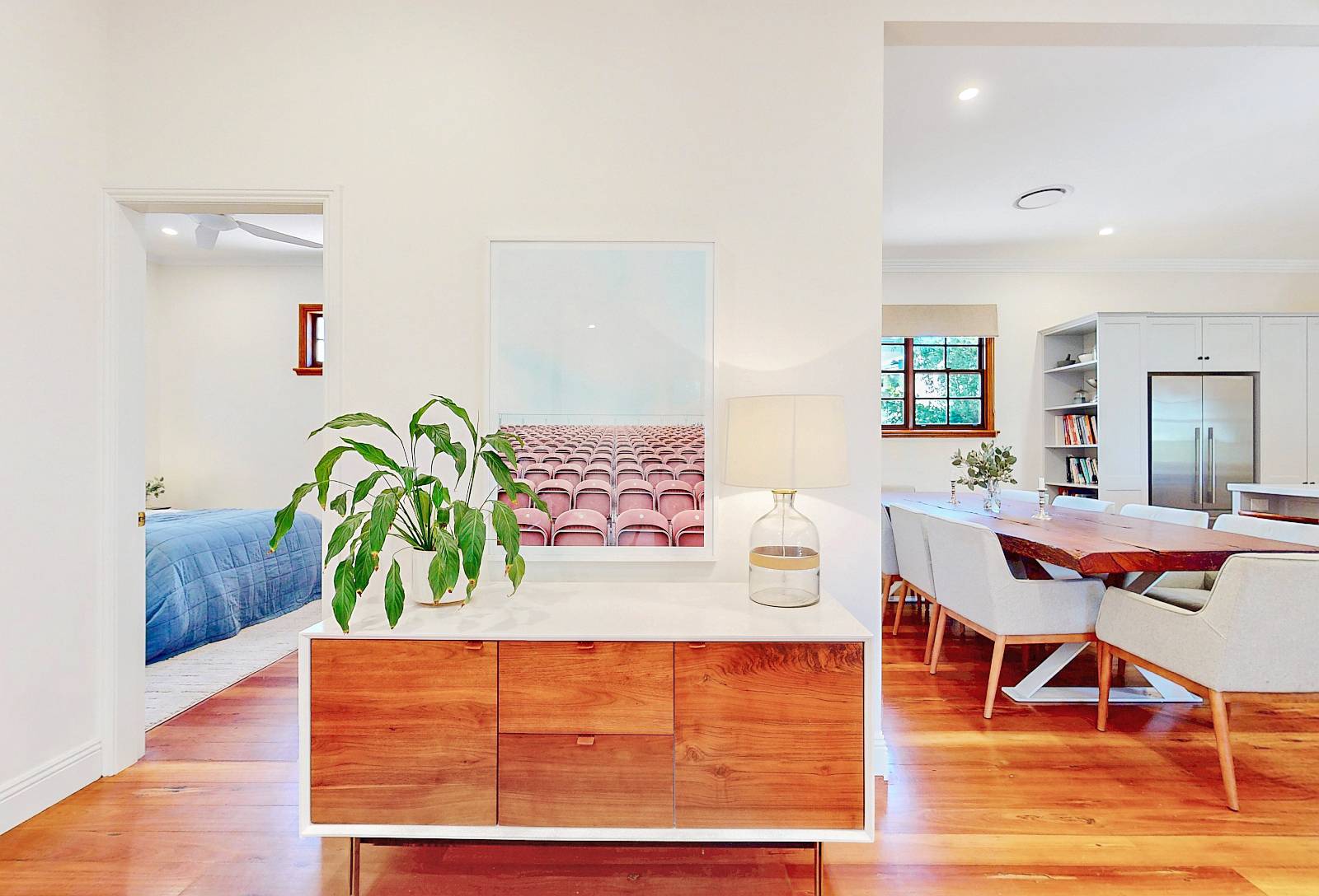 Unassuming at first glance from outside, hiding behind the front hedge alight to an uplifting historic facade, enter into the classic configuration being typically 2 x 2 with three bedrooms along hallway & main bathroom adjacent, walking through to the wow factor, you know its going to be good as you walk through, Pandora's box awaits, expanding spatially to vibrant clean lines, meticulous craftsmanship along with instant ambiance, comfort & style.