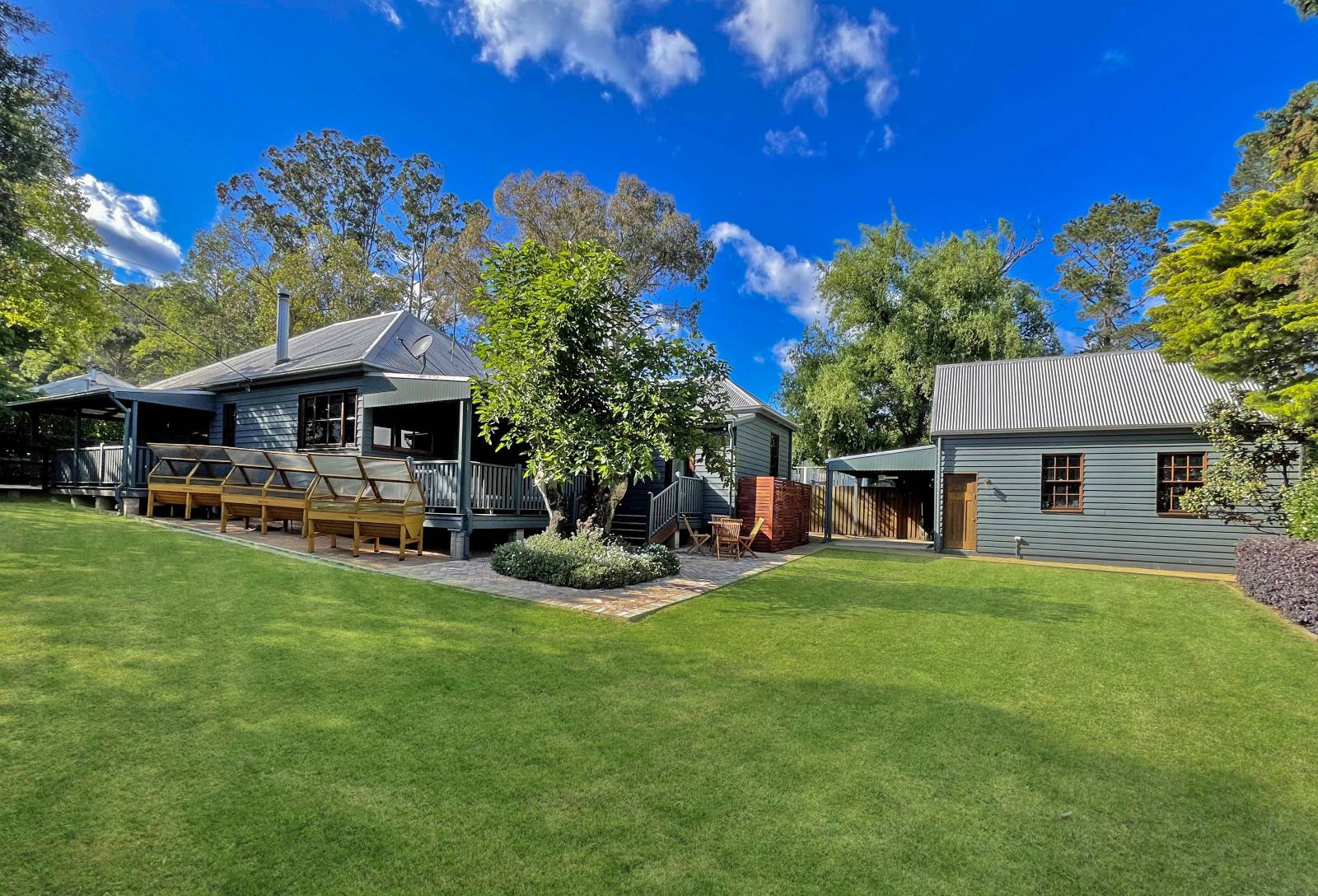 Generous setbacks, front veranda, balanced entry, tiled foyer, Zincalume roofing, lapped cladding transports the senses back in time, colonial settlers heading west, simple & effective design facets nostalgically sought after today, traditional 'Australiana' values in the 21st century.
