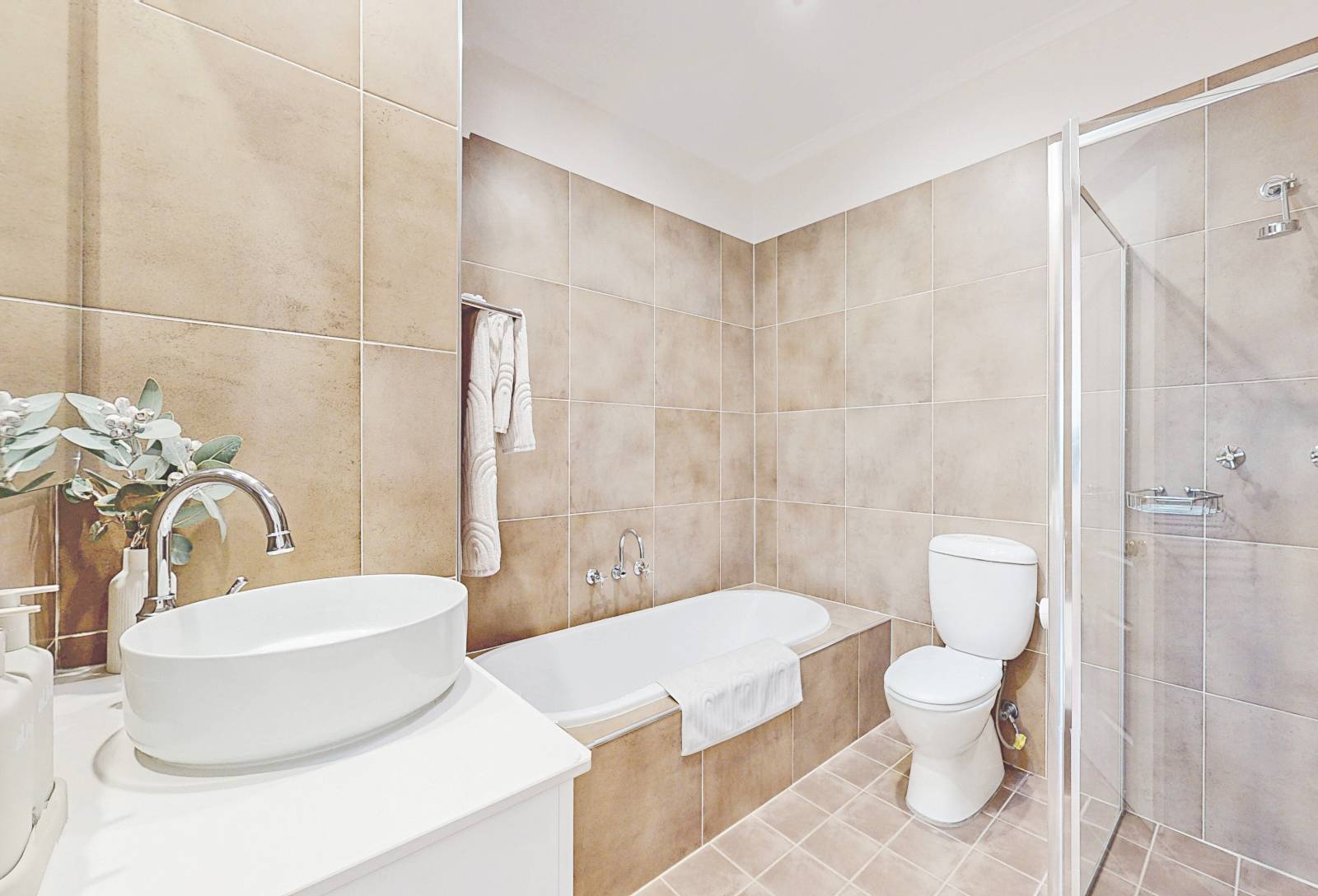 Informal dining area, through kitchen to neatly incorporated access to large galley laundry, separate 3rd w.c & further access to wraparound rear decking, steps into the paved garden pathways & large totally usable garden area laid to lawn. Down lights & ceiling fans compliment.