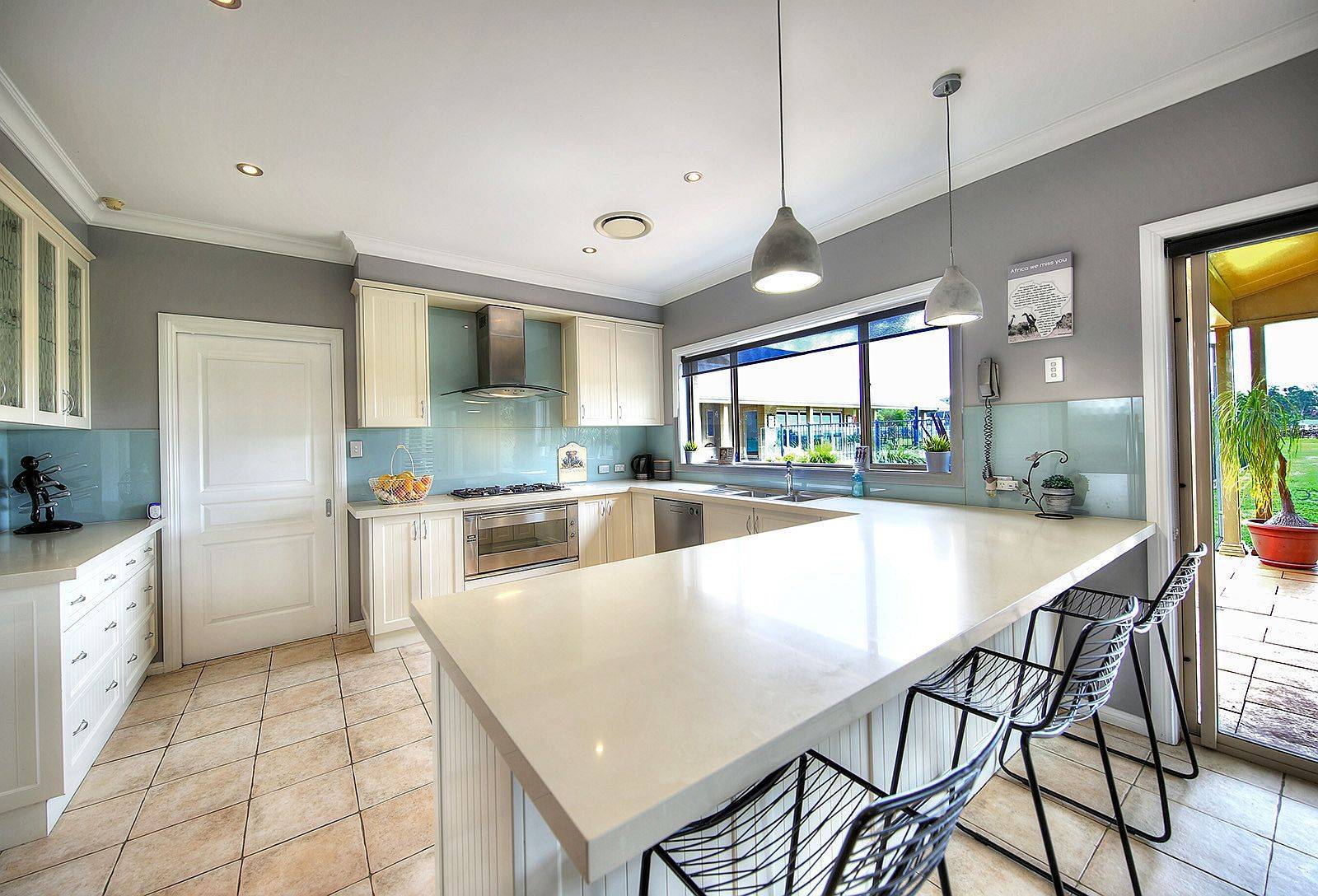 - Chefs kitchen with quality appliances, Caesar stone benchtops, walk in pantry