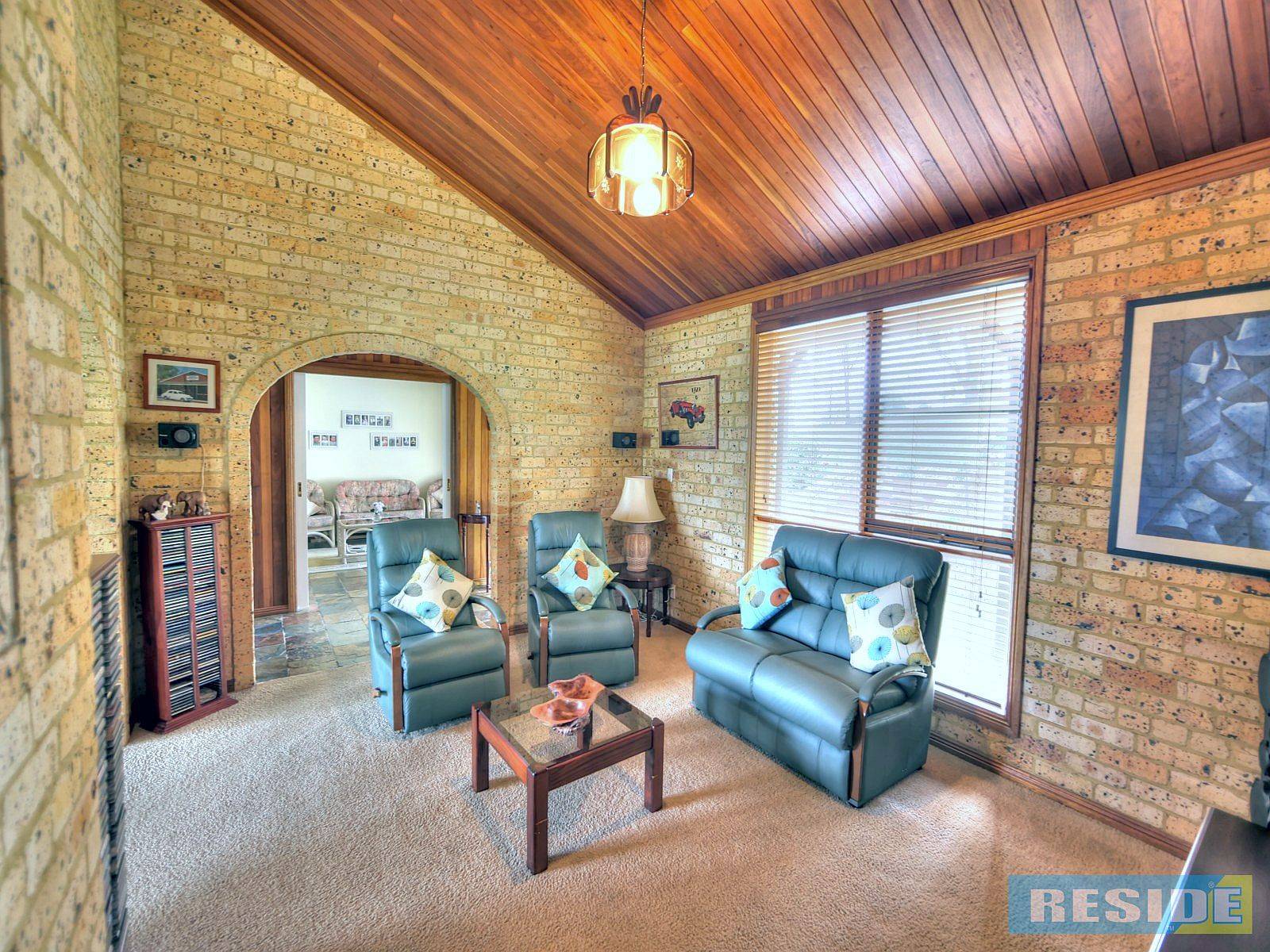 Raked timber lined cathedral ceilings, 2.7m ceiling heights & slow combustion brick fireplace add to the attraction. Slate floors & stone bench tops adorn a fabulous timber kitchen that has been renovated along with the main bath & en-suite. Natural light enters the home though large timber windows so the home sparkles throughout the day. The gardens are attractive, well planned & combined with the feature brick retaining walls, garden beds & entry steps to compliment the overall appeal.