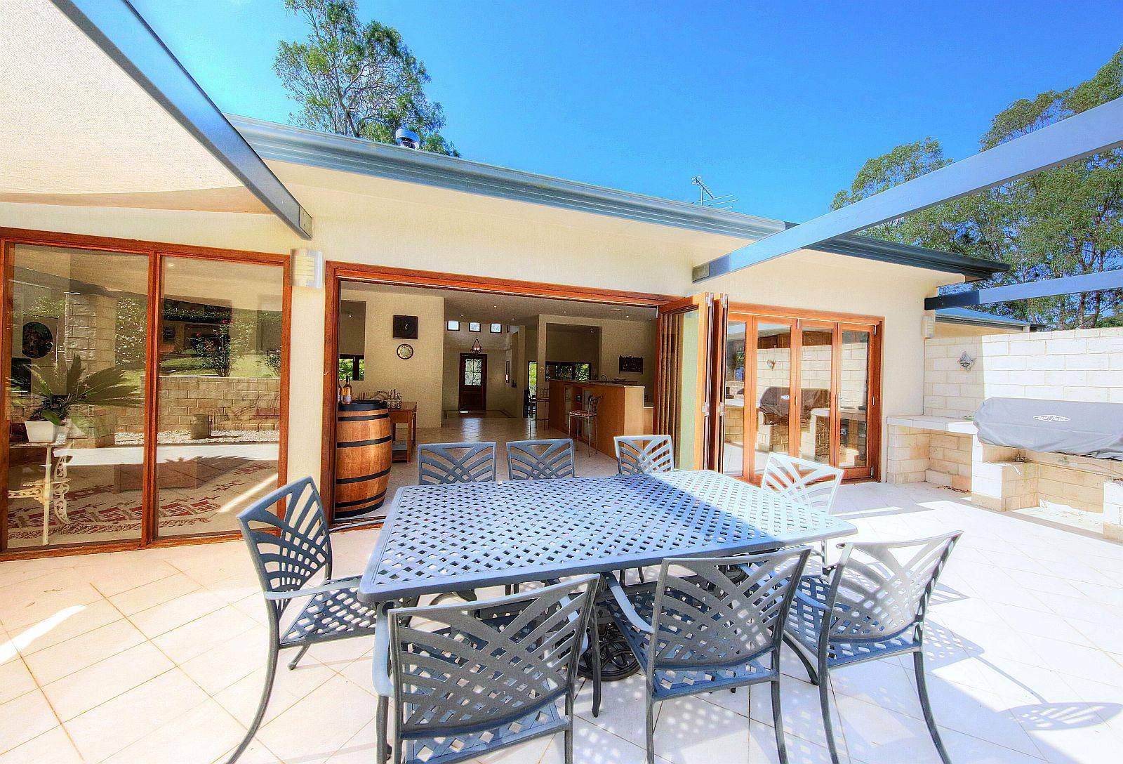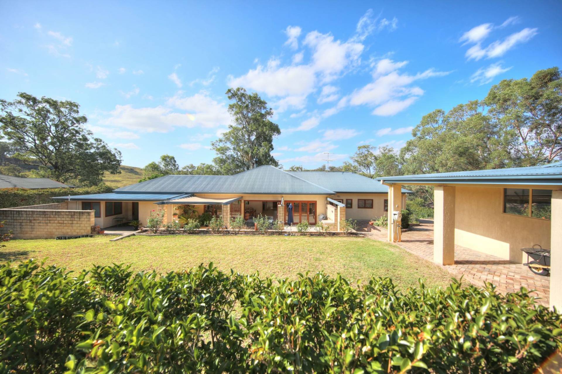 Nangarin prominence - Over several levels internal comfort does not get any better, with vast open space characteristics, superb galley timber kitchen alight to the vast patio BBQ area & personal relaxation privacy off master suite. Featured high ceilings, beautiful stacker doors & French door access to front wraparound veranda overlooking the delightful native gardens a haven for native fauna & a variety of visiting birdlife. So much going on here that every angle appeals & every member of the family will find a spot to enjoy. Large bedrooms with hardwood polished blackbutt flooring 2 & 3 with vantage points for relaxation & summer breeze ventilation.